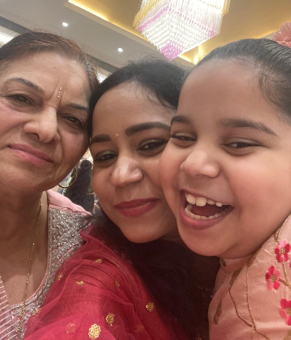 मै यहाँ आप सबको आज अपनी दादी जी के बारे में कुछ बाते बताना चाहती थी, मैं उनको दादी जी नहीं मम्मी जी केह कर बुलाती थी | मम्मी जी मुझे बहुत प्यार से पढ़ाया करती थी | अगर मुझे पढ़ाई में कुछ समझ नहीं आता था तो वो बिना डाटे दोबारा पढ़ा देती थी | मम्मी जी और मैं लूडो बहुत शौक से खेला करते थे, जब मैं छोटी थी तो वह जीत जाती थी ,पर धीरे-धीरे उन्होंने मुझे भी जितना सिखाया | हर मंगलवार मैं उनके साथ मंदिर जाया करती थी | तब वह मुझे हर भगवान के बारे में समझती थी | मुझे मोबाइल देखना बहुत पसंद है, मुझे अपना मोबाइल इस्तेमाल करने के लिए दे दिया करती | जब मेरी मम्मी मुझे डाटा करती थी तो वह मुझे बचाया करती थी | इस बार लोहड़ी फंक्शन में मैंने उनको डांस की प्रैक्टिस भी करवाई थी | हम दोनों लगभग रोज एक जैसे रंग के कपड़े पहना करते थे, वो यह कहकर बहुत खुश होती थी की जब उनका और मेरा कद एक बराबर हो जाएगा तब हम एक दूसरे के कपड़े बदल बदल कर पहनेगे | उन्होंने मुझे छोटी-छोटी रोटियां भी बनाना सिखाया था, मेरे दादाजी ने मुझे बताया जो लोग ज्यादा अच्छे होते हैं उन्हें भगवान जी उन्हें जल्दी अपने पास बुला लेते हैं, मेरी भगवान से प्रार्थना है कि मेरी दादी जी जहां रहे खुश रहे | मैं अपनी दादी से बहुत प्यार करती हूं और वो सदैव मेरे दिल में रहेंगी, मेरी आप सब से विनती है कि आप मेरी दादी जी के लिए प्रार्थना करें ओम शांति ||