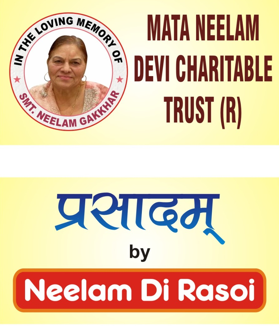 Mata Neelam Devi Charitable Trust also contributes to Parsadam Seva at Various Ram Katha, Bajan, Kirtan, Shiv Sandhya and other Religious gatherings.